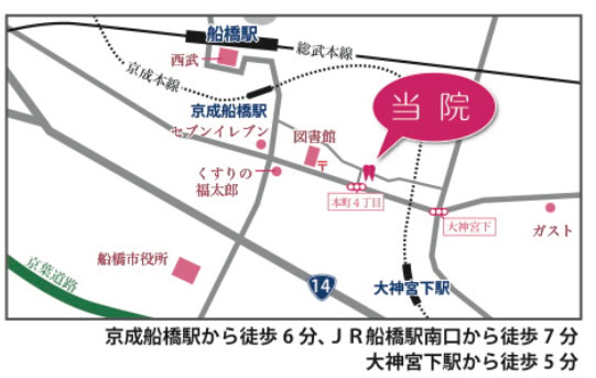 京成大神宮下駅-大神宮交差点-左折-海老川をこえて-京葉銀行並びの3つ目