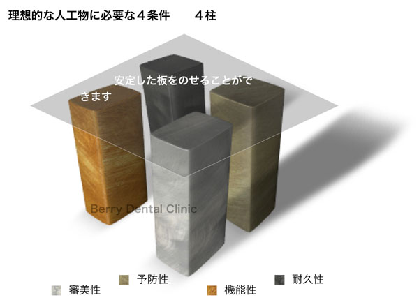 審美性、予防性、機能性、耐久性、の4本柱すべてがしっかりとしていければ、その上に重いテーブルの板を載せても、崩れないで完全に安定している状態を保つことができるのです。
