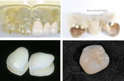 下の画像のように小さい銀歯の人工物からセラミック系の修復物も取り扱っております。