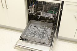 患者さんのお口の中で使用される道具はすべて手洗いではなく血液等のタンパク質除去が完全にできる機械洗浄機器を使用して、基準の厳しい真空滅菌器で滅菌されて一つ一つパックされております。