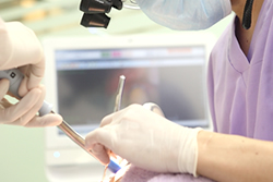 | 2. | しばらくしてから機械コントロール式の麻酔機にて患部の麻酔をおこないます。 |