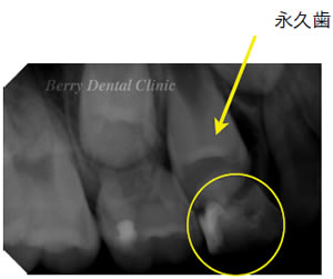 お子様の仕上げ磨き等で乳歯がある歯ぐきに炎症生の腫れなどがしばらく続いている時はレントゲンを撮影してその場所の乳歯のみならず、中の永久歯の状態もチェックします。