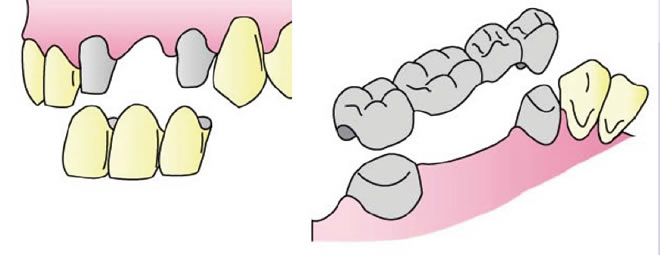 ブリッジ治療とは歯の欠損している両脇の歯を加工して作成する補綴物になります。