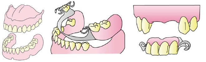 入れ歯は左の画像のように取り外しができる補綴物です。